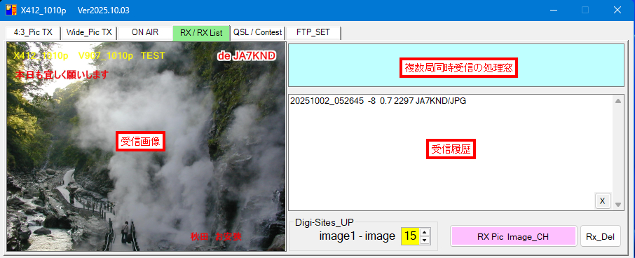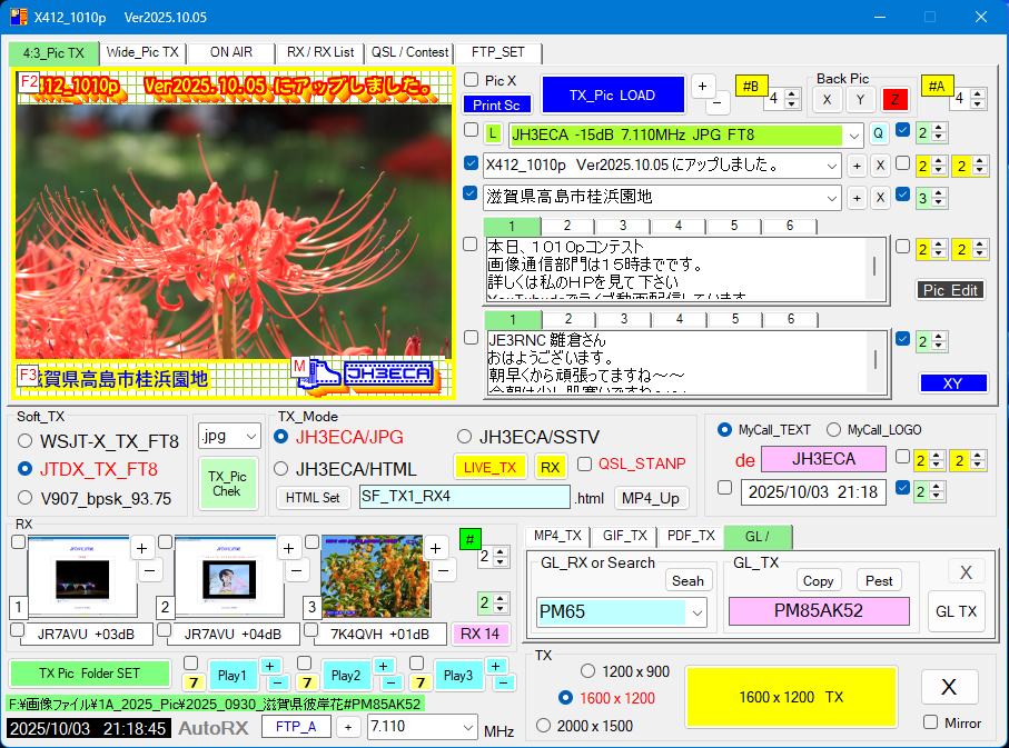 毎週 木曜日 | 20 時 ~ 21 時 | 7.110 MHz (LSB) | FT8 / bpsk_93.75 による画像通信 |
