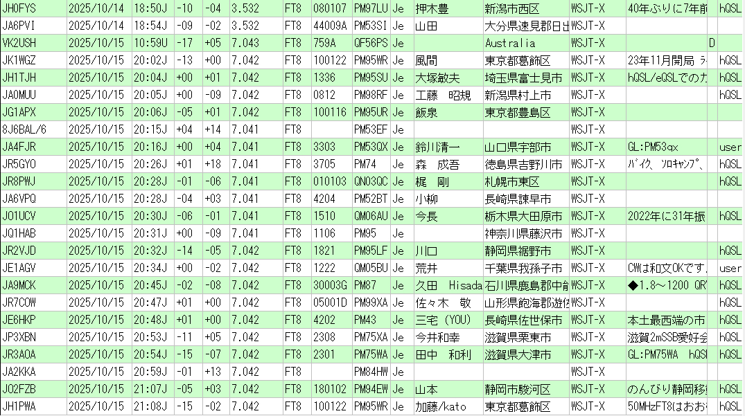 1010pコンテストのFT8交信部門のログ提出方法は・・・ ![]() 1010pコンテストのログ申請の締め切りは 2025年10月20日 月曜日です。 |
