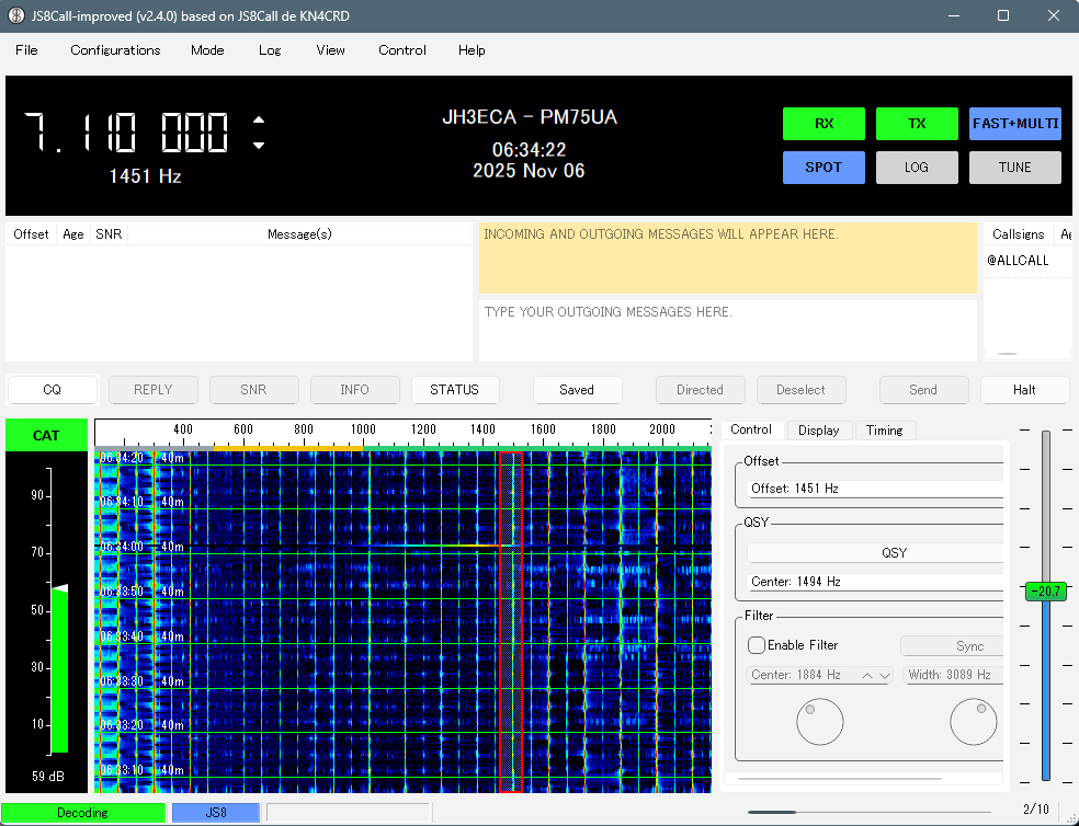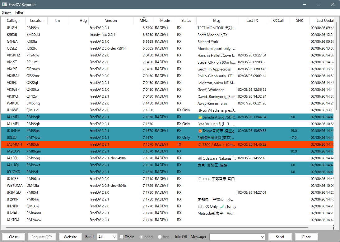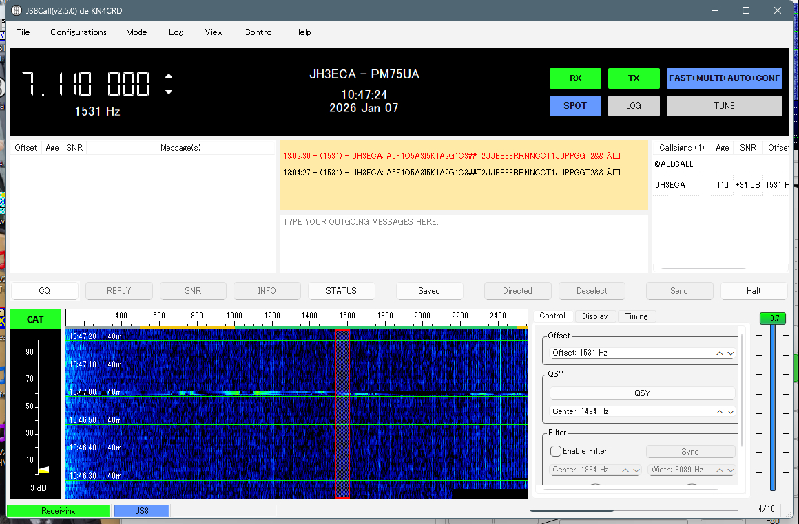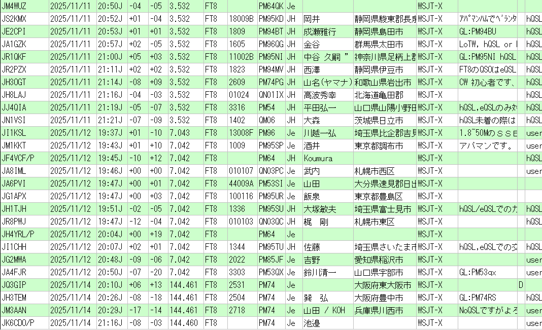 | 毎週 水曜日 | 20 時 ~ 21 時 | 7.041 MHz (USB) | FT8 / FT4 の微弱通信 |