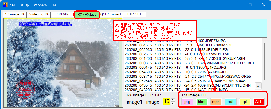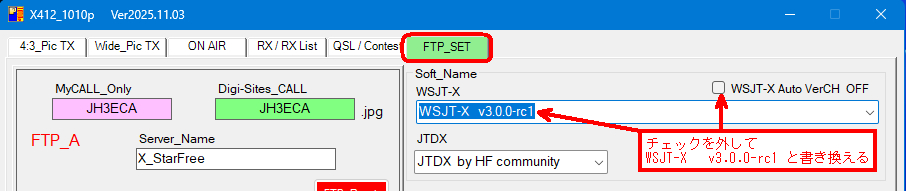 X412とJTDXを使って画像通信の時は必ずJTDXは日本語表示では無く、英語表示で使って下さい。 JTDXが日本語表示ですとX412とリンクしません!! |