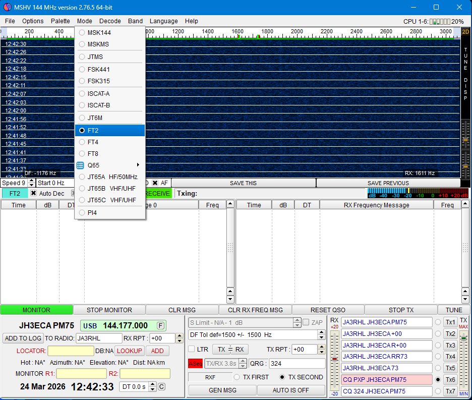 | MSHV Ver 2.76.5 ・・・ ● FT2が搭載されました。 ![]() |