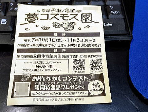 2025年10月21日(火) 亀岡市の「夢コスモス園」に行ってきました。 天気は曇りでしたが、、、コスモスは満開でした。 |