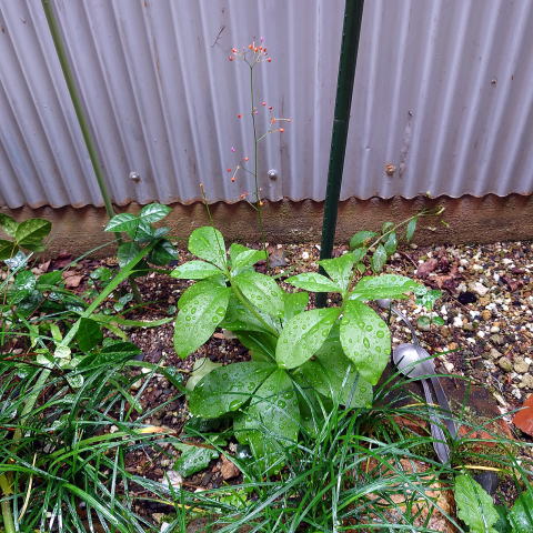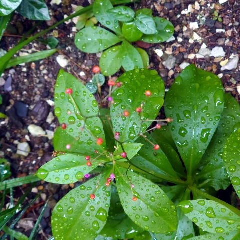 2025年10月09日(木) 我が家の庭の端っこにめっちゃ興味深い花が咲いています。 自然に芽が出て何やらかわいい小さな赤い実?花?? ネットで検索すると「ハゼラン」と出ます(1年草)。。。 植えた記憶ないんですが??鳥さんが運んで来たんでしょうか?? |