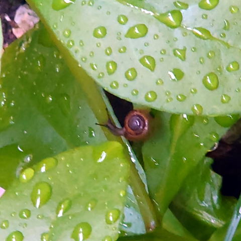 2025年10月10日(金) 前日紹介の「ハゼラン」に、でんでん虫の赤ちゃんが、、、 |