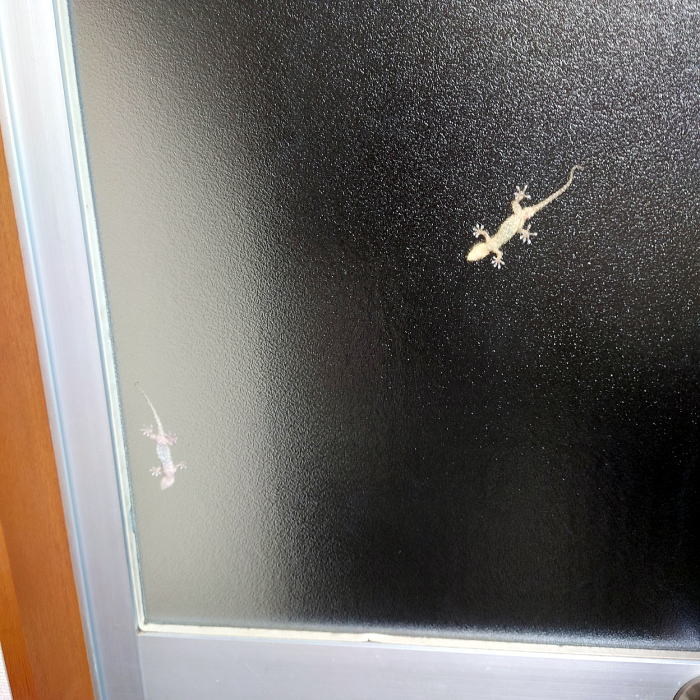 2025年10月13日(月) 「やもり」の夫婦??親子?兄弟??? ネットで調べると「やまり」の縄張りみたいなのは無いようです。 いつもは1匹だけなんですが、、、2匹は初めてでした。 |