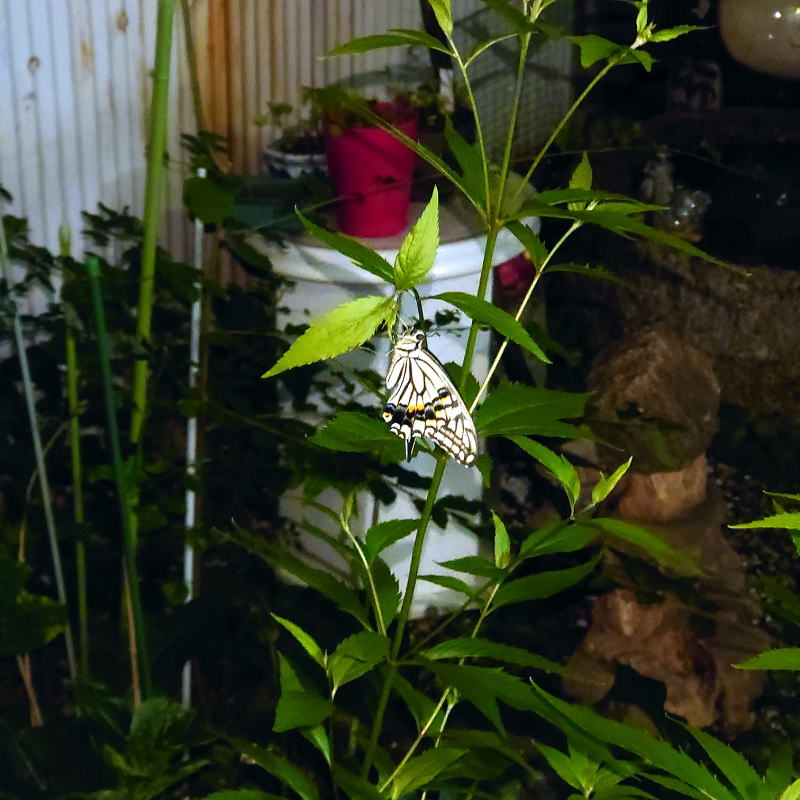 2025年10月23日(木) 我が家の「藤袴 フジバカマ」の花の蝶がとまってました。 花がまだ咲いてないので蜜は無いと思いますが、、夕方に来て朝までとまってました。 |