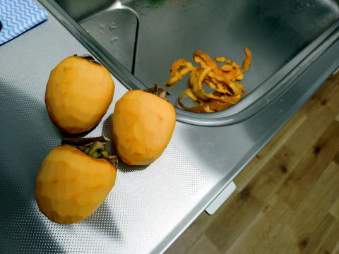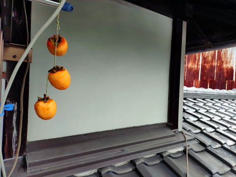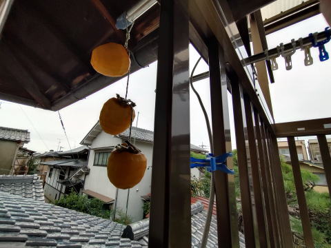 2025年11月02日(日) 滋賀県の道の駅で「しぶ柿」を売ってましたので「干し柿」に挑戦!! 皮をむいて紐につるして熱湯消毒して軒下につるすみたいです。 |