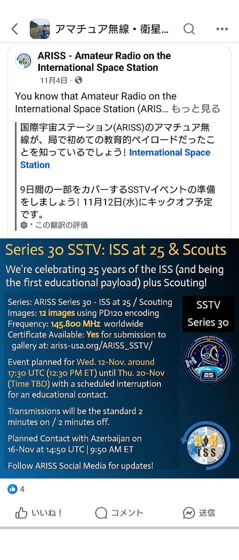 2025年11月11日(火) 国際宇宙ステーションからSSTVの送信 JA2GRC 大塚さんのHPでも詳しく紹介されてました。 |