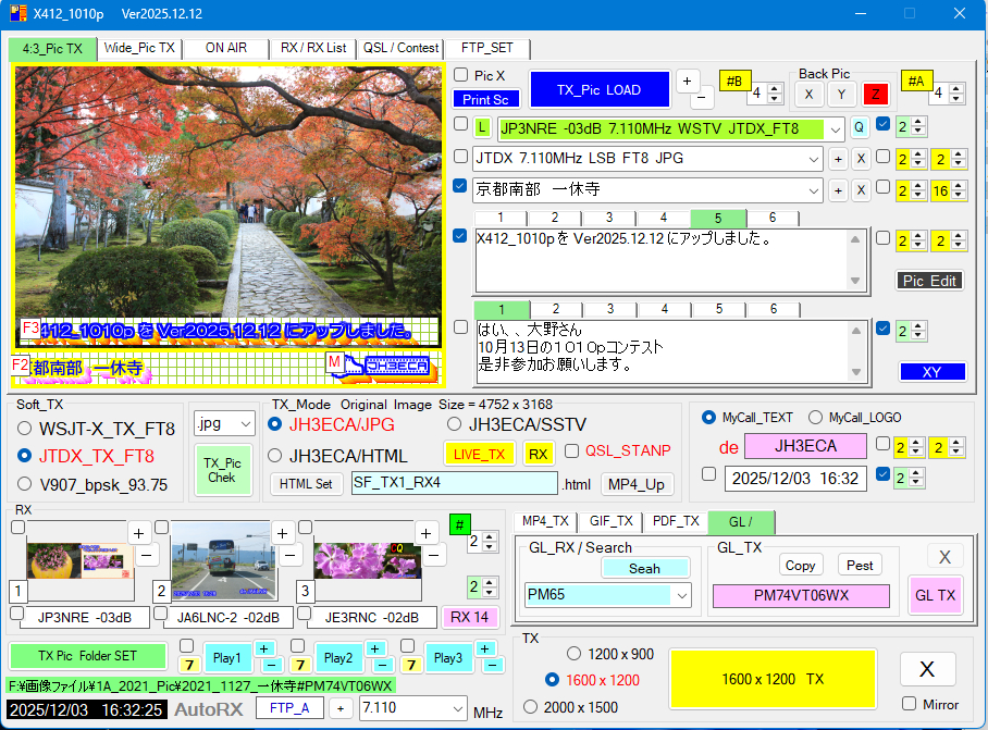 Ver2025.11.01 Wide_Pic TX 画面でフリーメッセージを6個使えるようにしました。(今までは1個でした) |